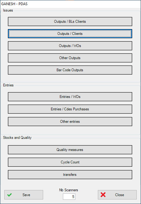 The Ganesh PDA Inventory Management module enables barcode entry of goods movements from a mobile terminal, PDA type barcode reader