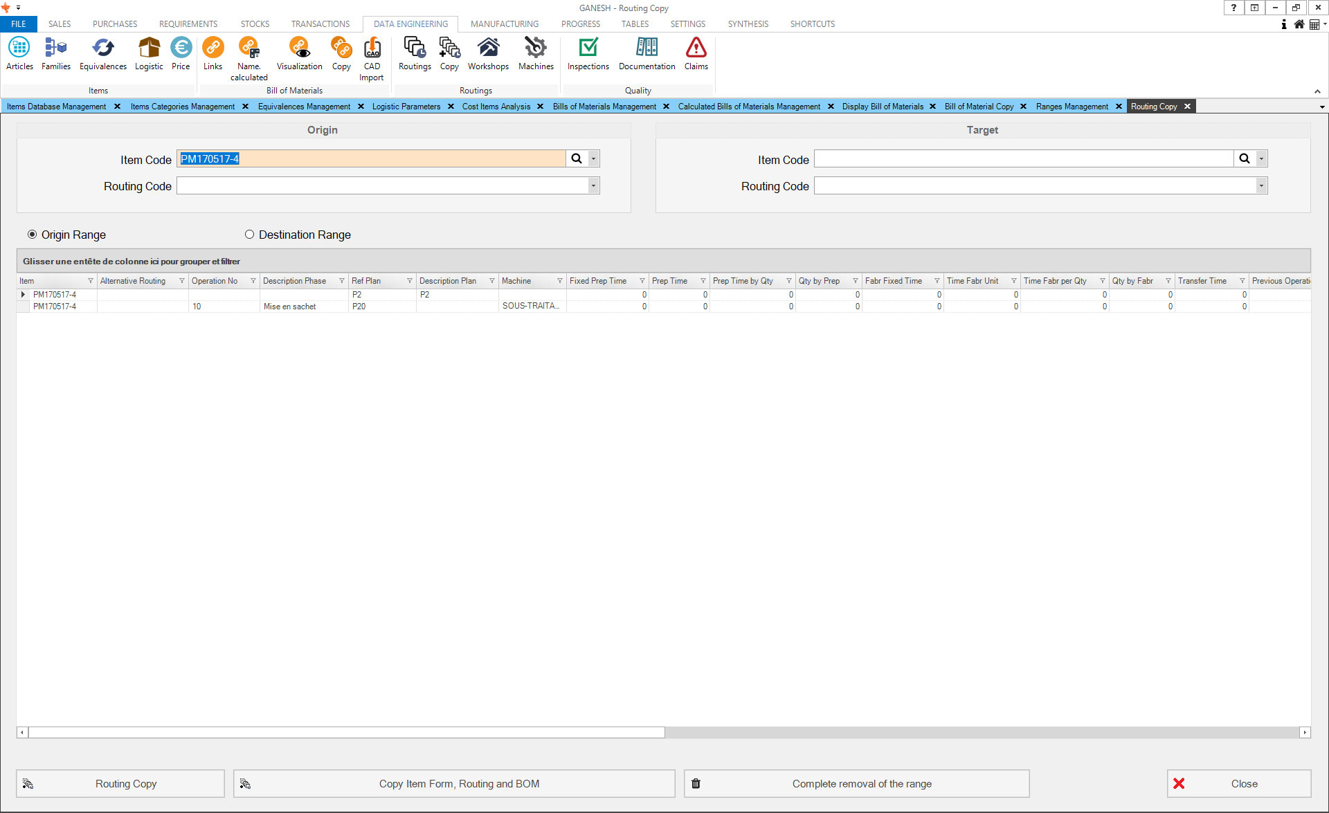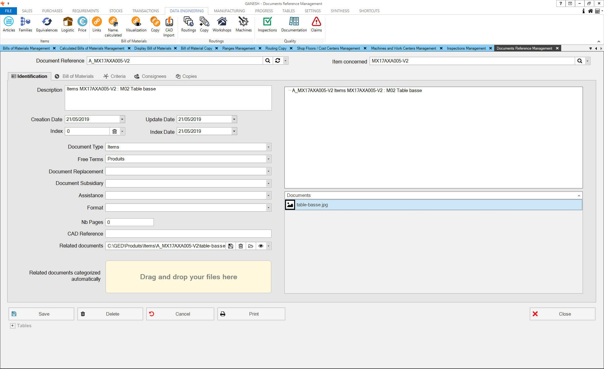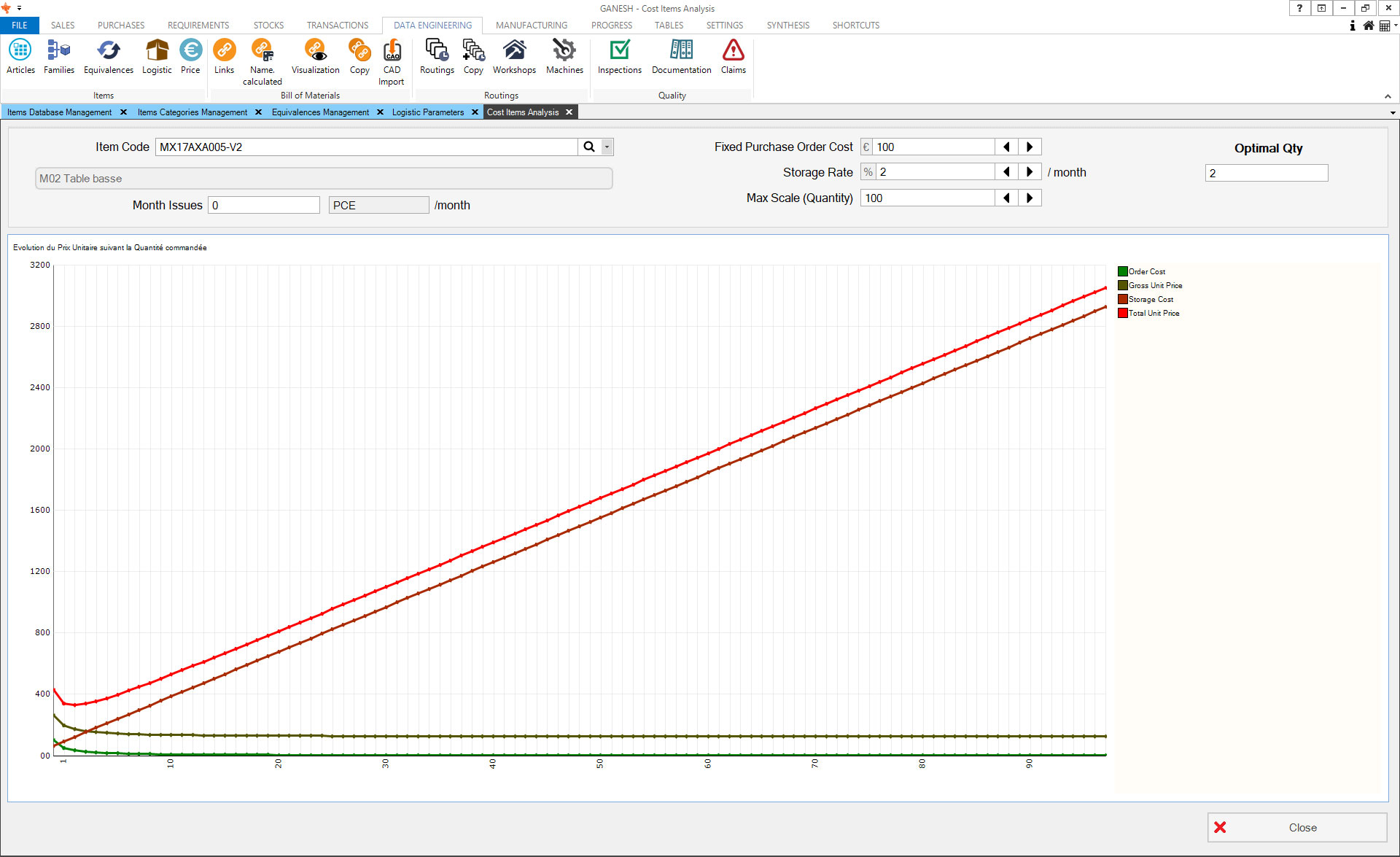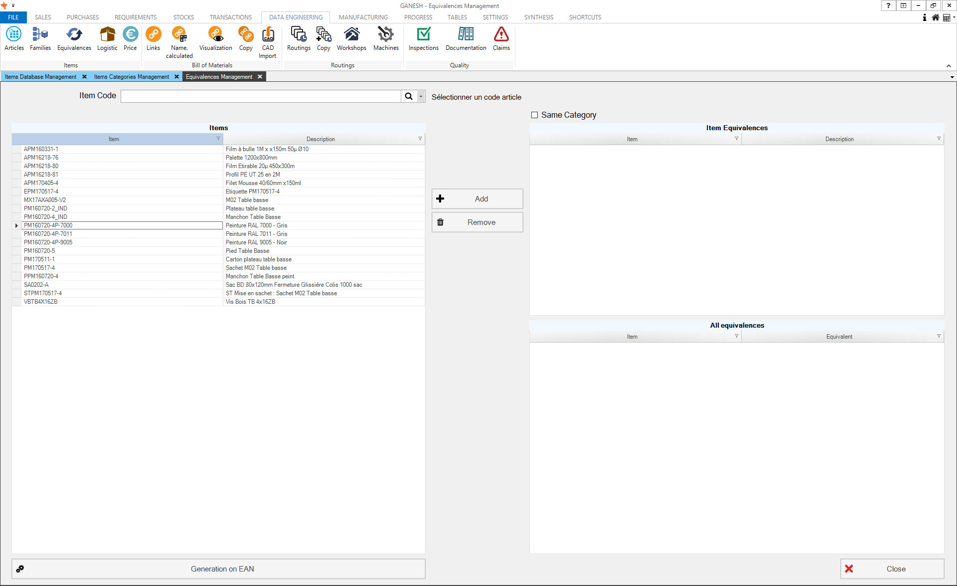 The Technical Data module allows the management of articles database. You can manually create articles or import finished product classifications from your CAD solution. Ranges and prices by vendors and quantities can also be imported.