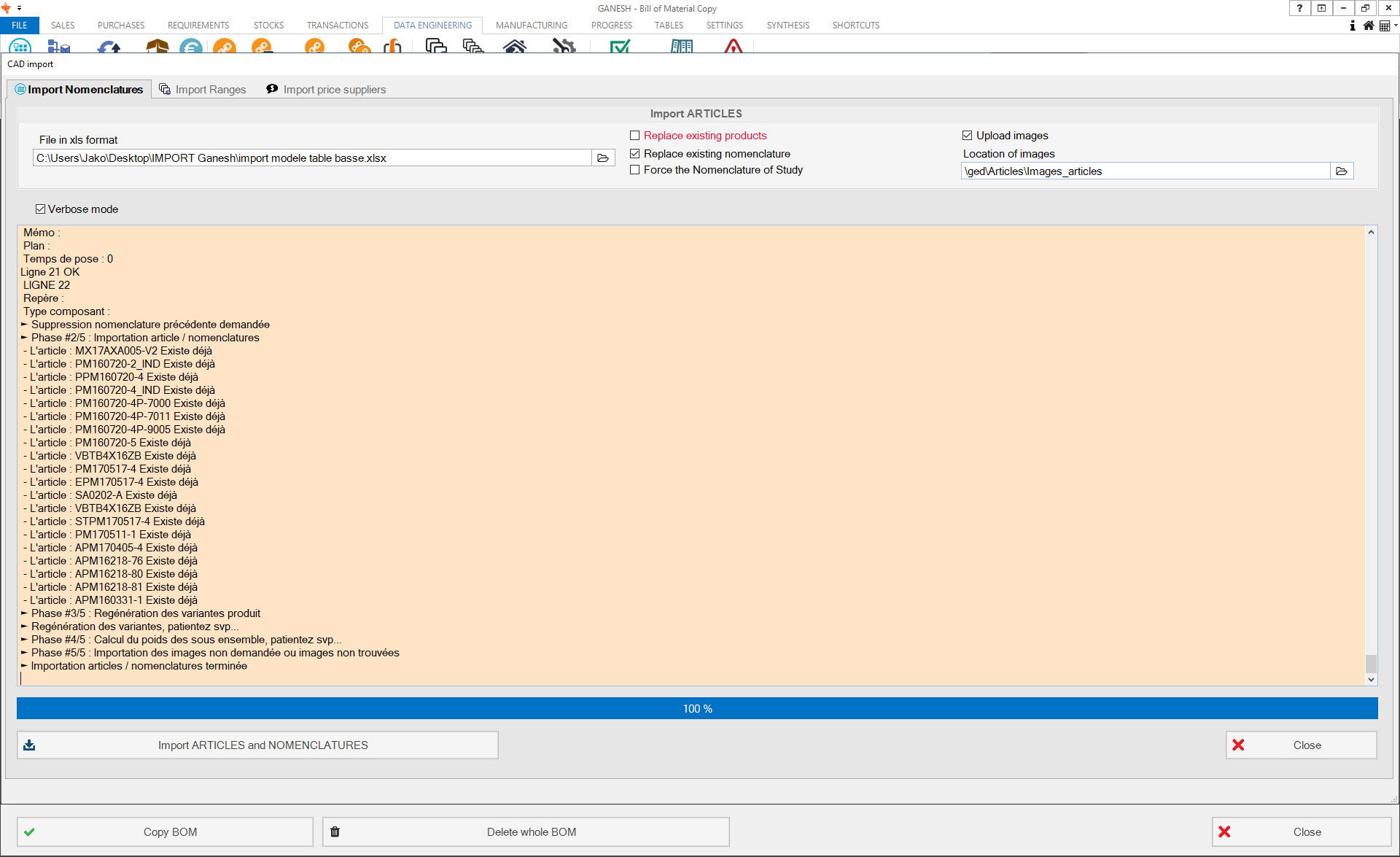 - Import BOM from a CAD system (excel format)