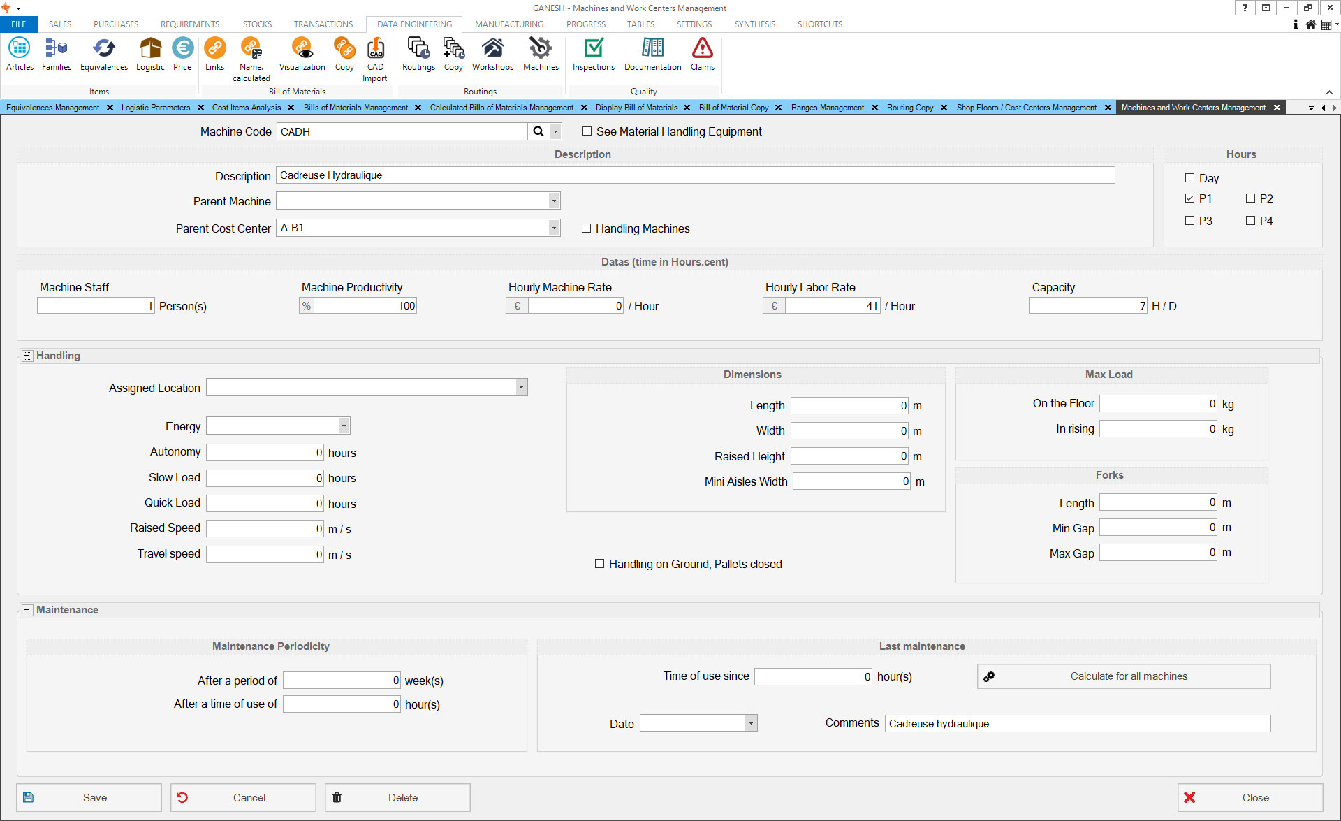 - Workshop machinery management