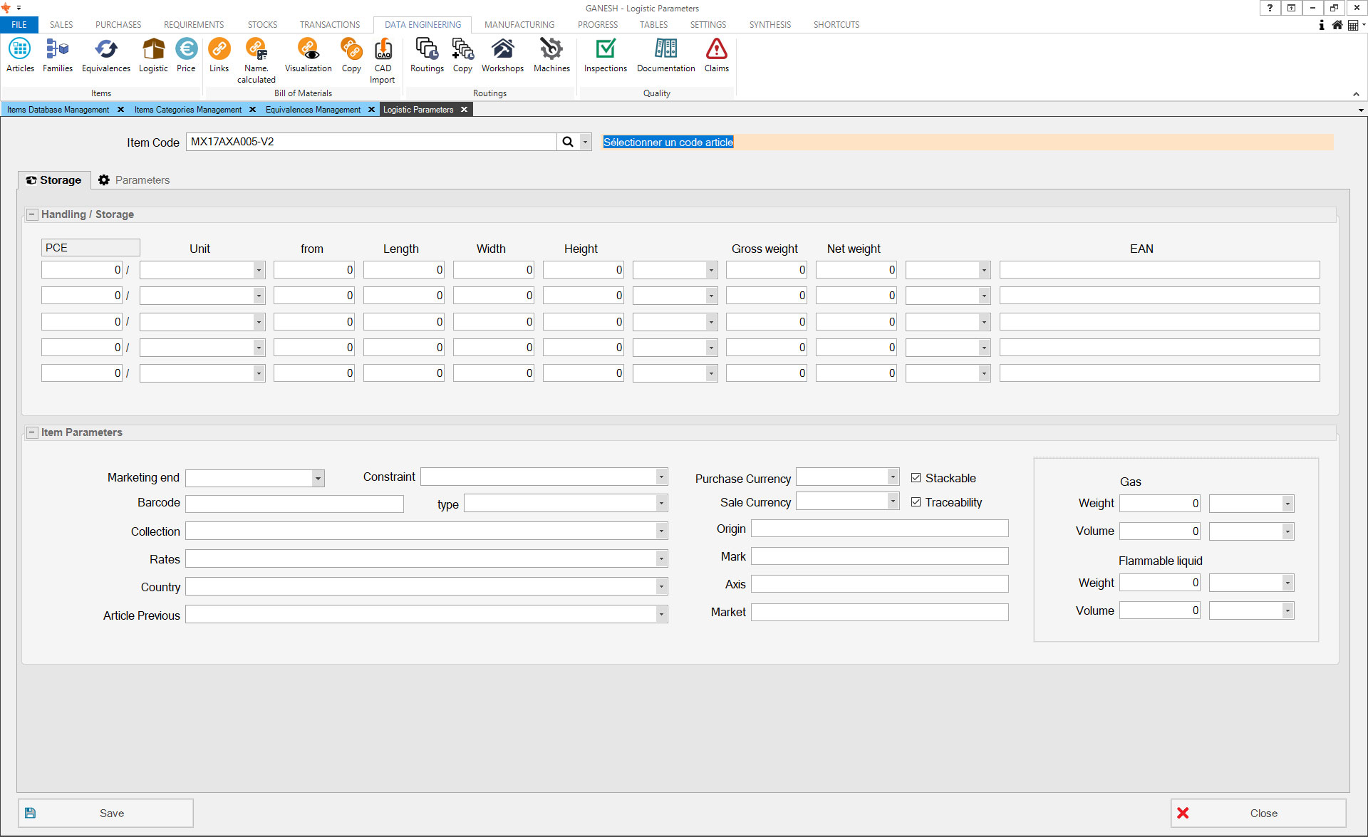 - Management of logistics parameters articles