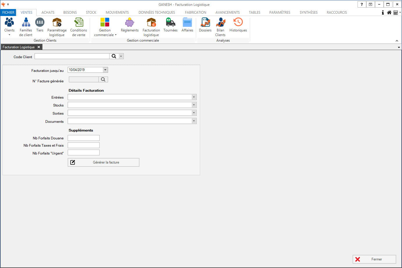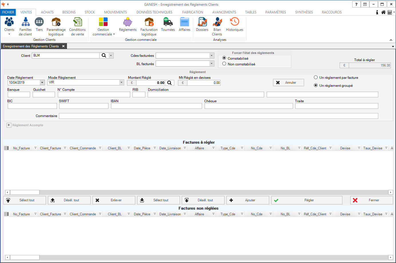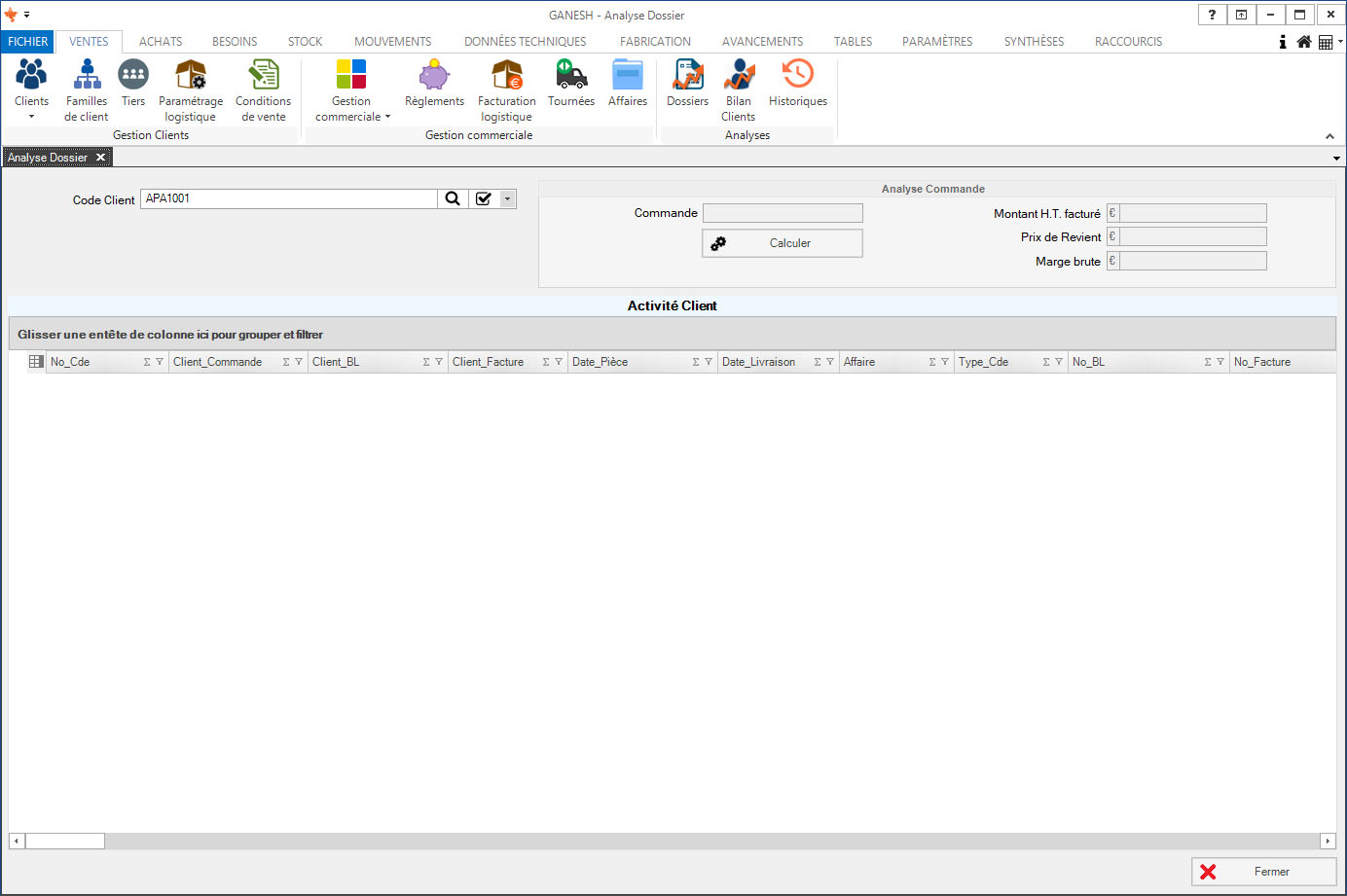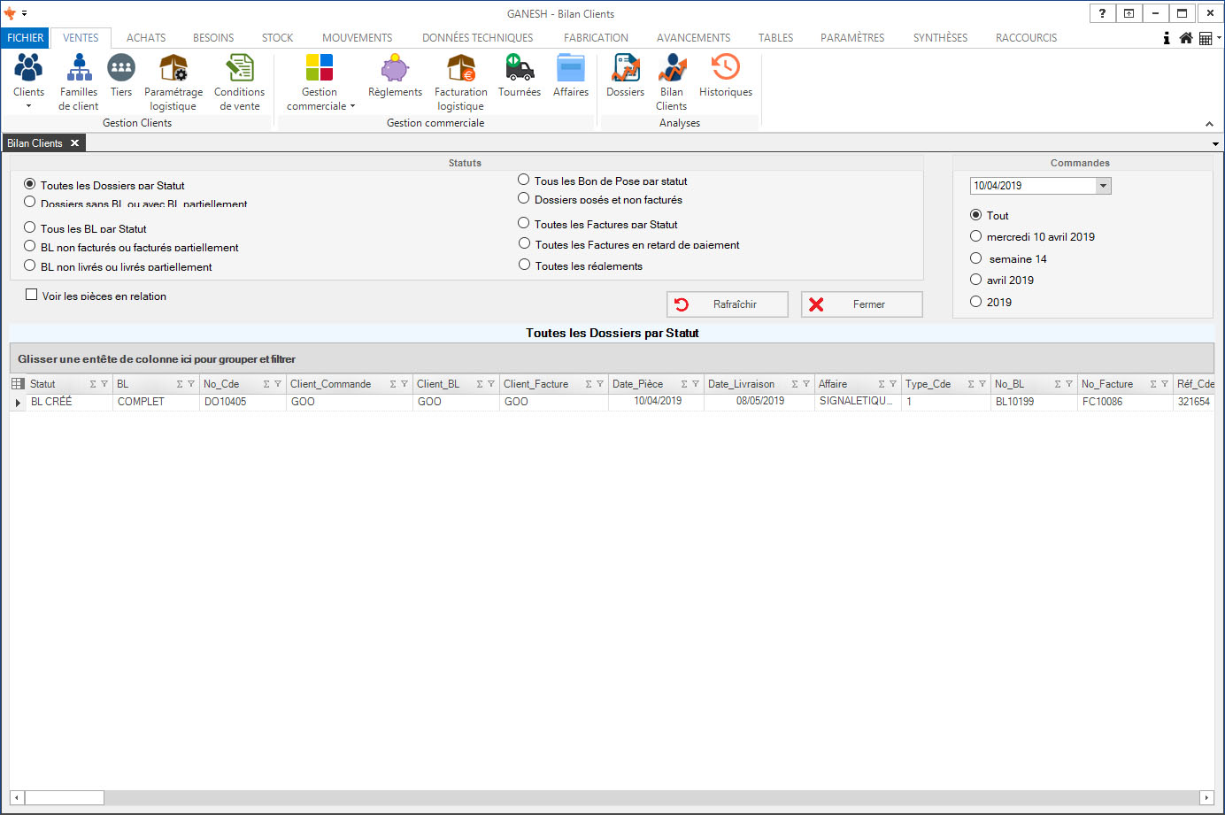L’onglet « Ventes » du logiciel Ganesh regroupe toutes les fonctions relatives aux ventes et à vos clients. Dans ce menu intuitif divisé en trois parties se trouvent les options concernant la gestion de vos clients, des affaires et leurs suivis
