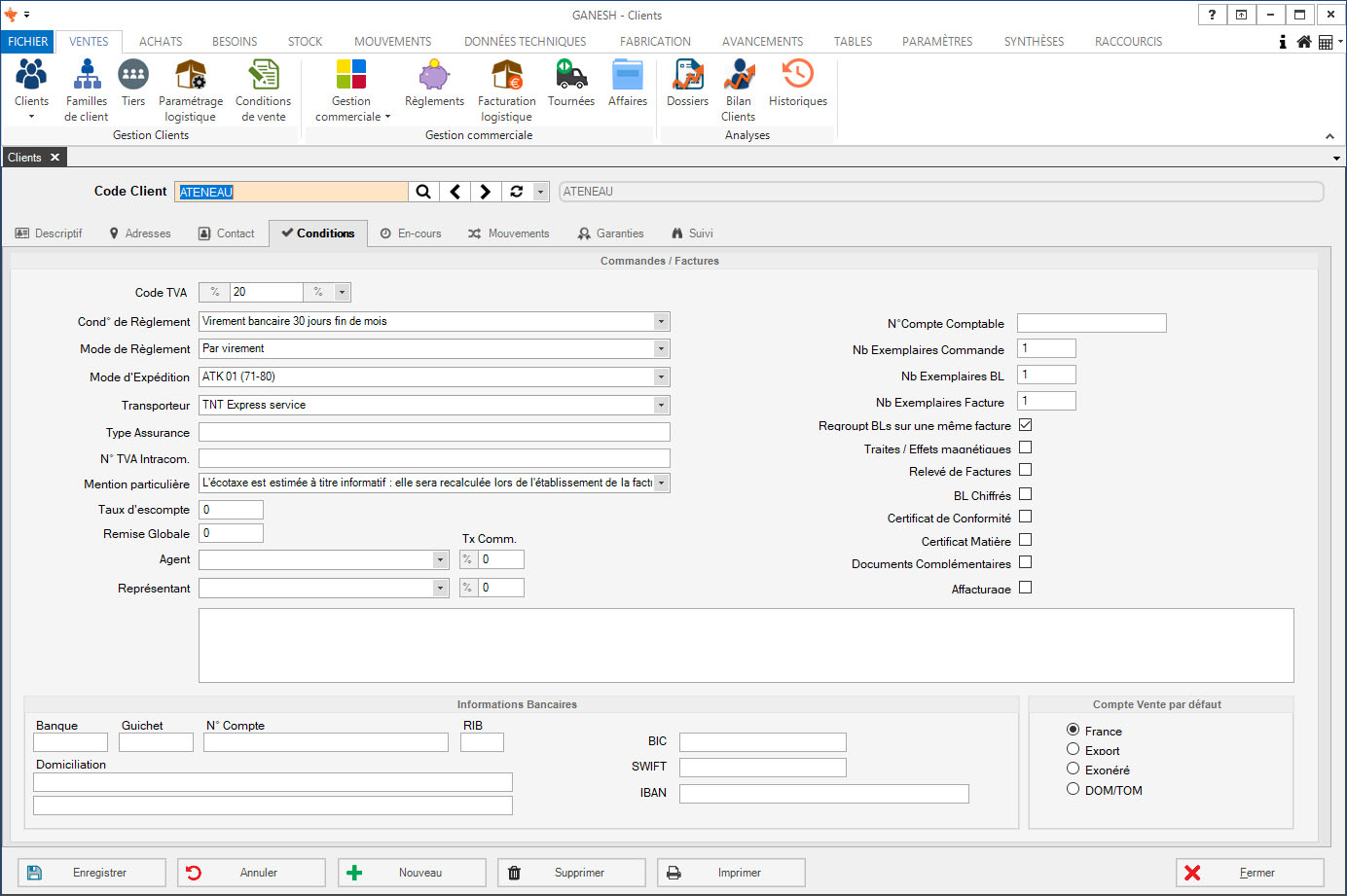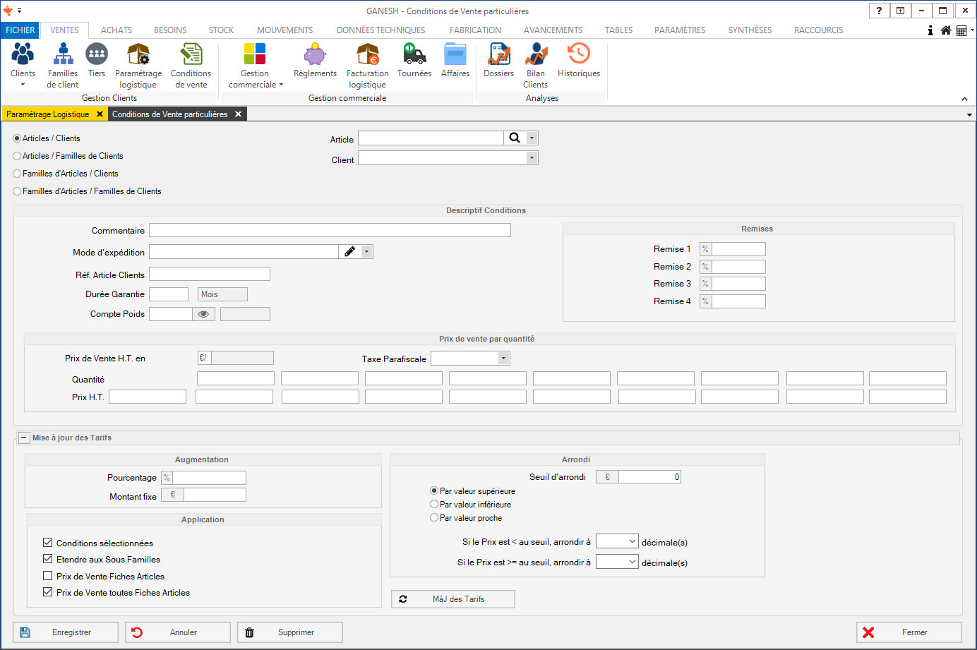 - Gestion des conditions particulières de vente par clients ou familles de clients