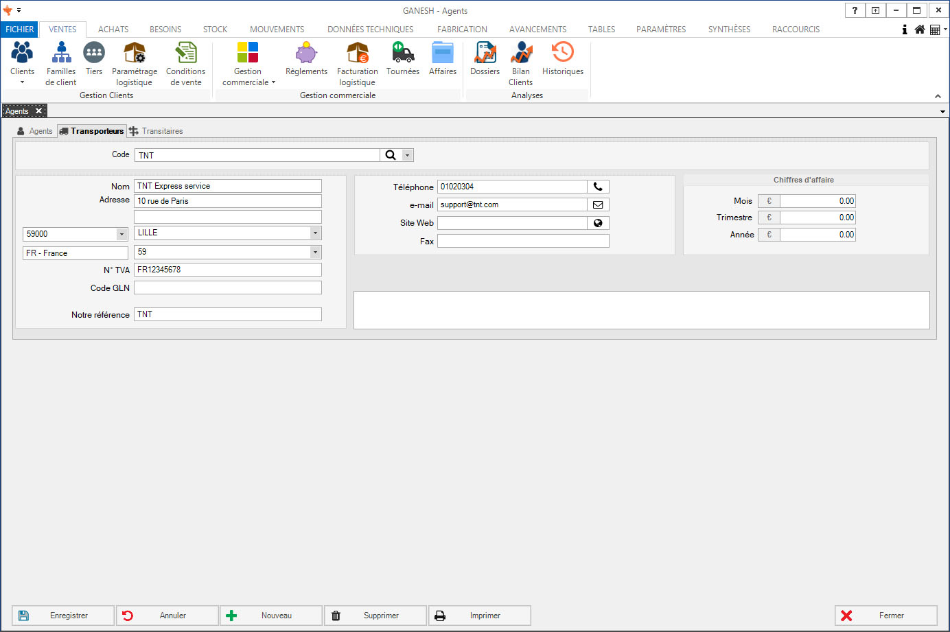 - Gestion des tiers : Agents, transitaires, transporteurs