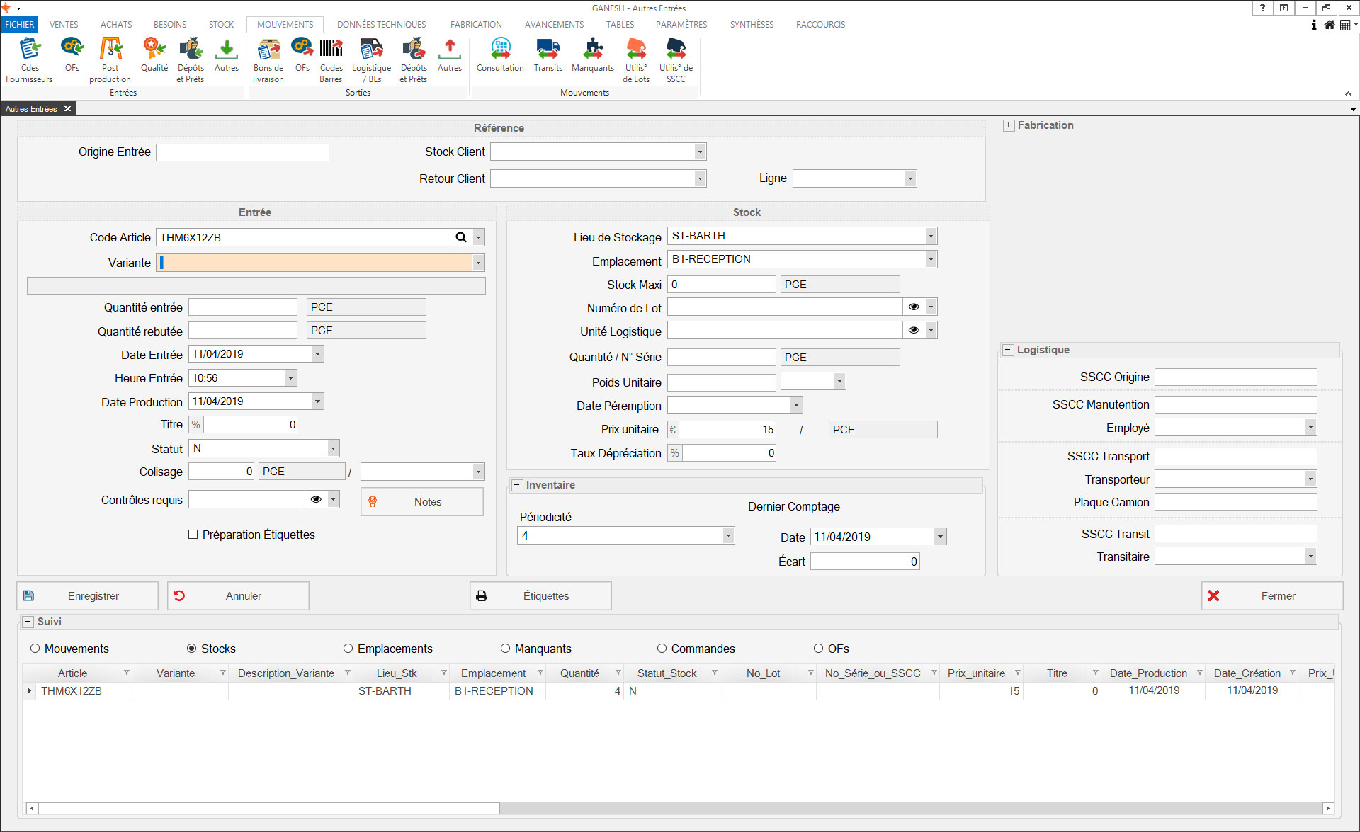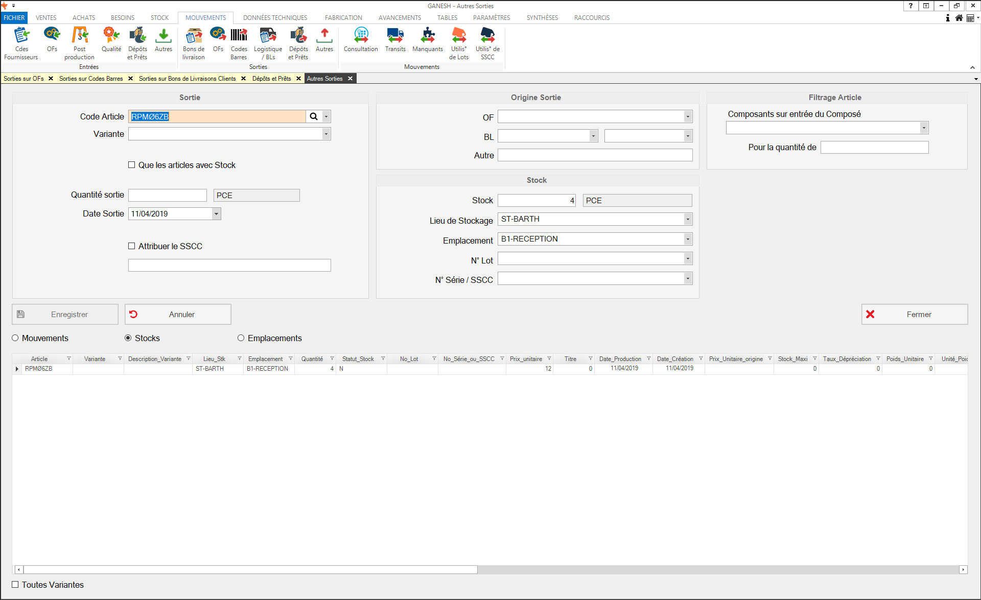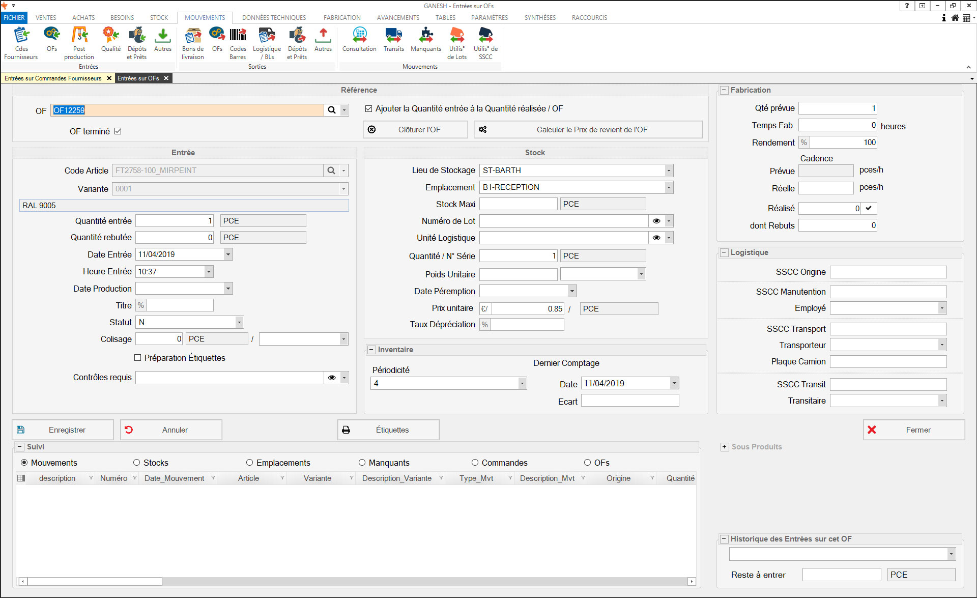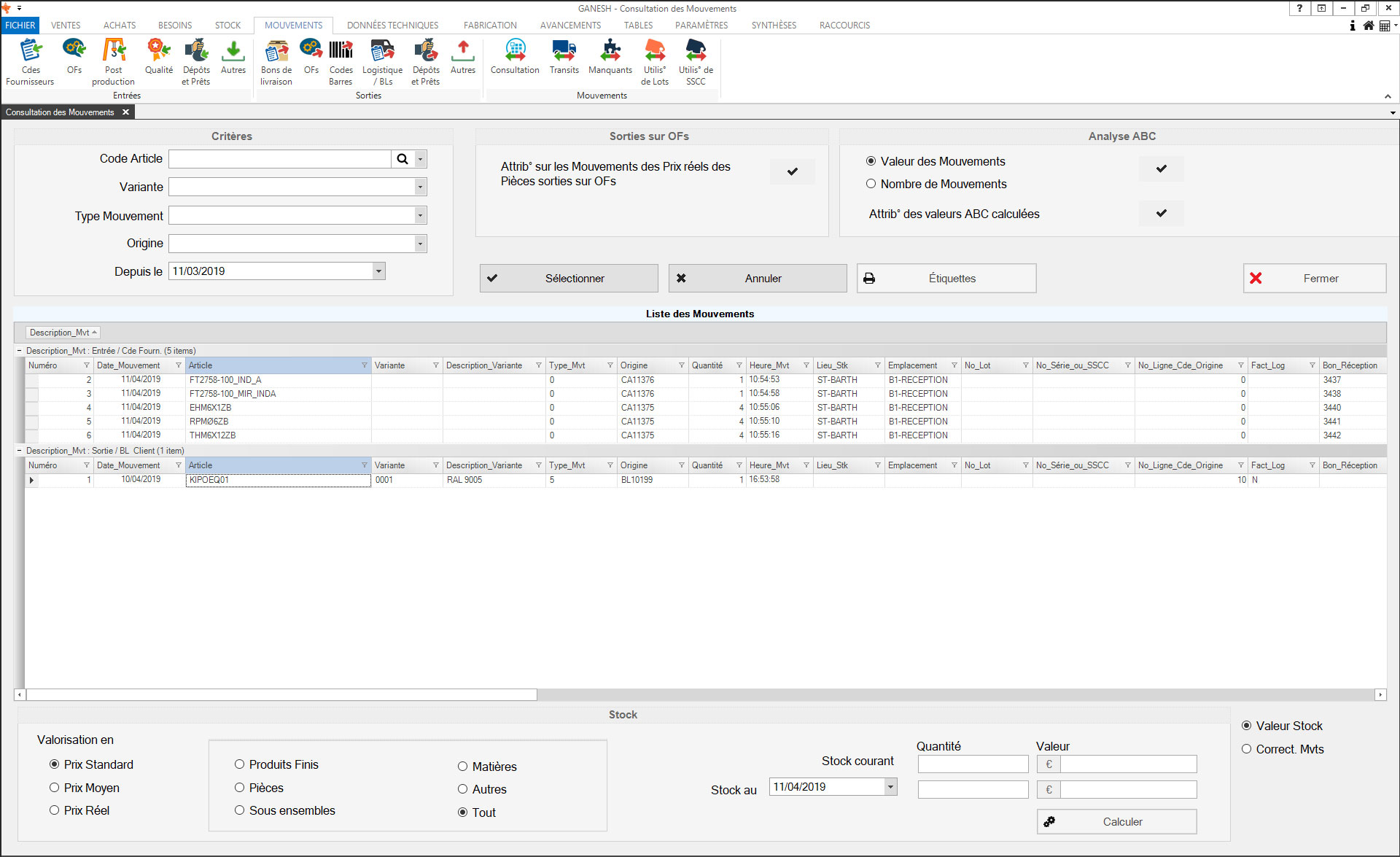 Le module Mouvements permet la gestion des Mouvements Entrées / Sorties pour la gestion des stocks