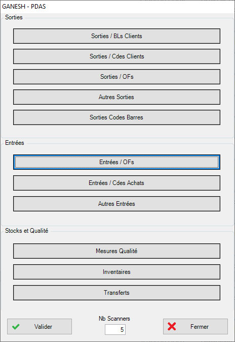 Le module Ganesh PDA Gestion de Stocks permet la saisie code barre des mouvements de stock depuis un terminal mobile, lecteur de codes-barres de type PDA